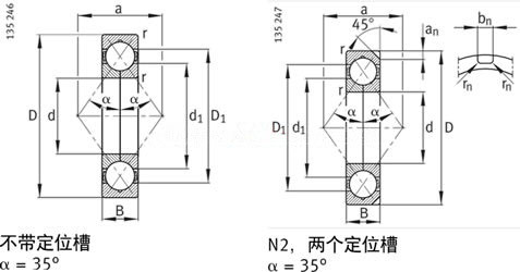 | 詳細信息(Detail) | 四點接觸球軸承,35°接觸角 | |