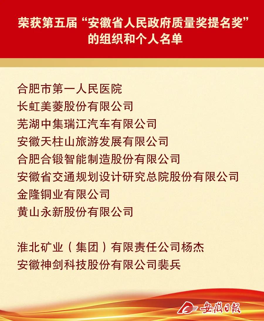 安徽省人民政府質(zhì)量獎(jiǎng)