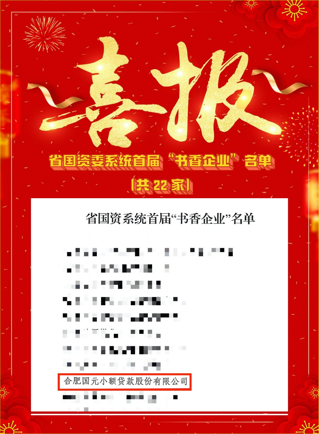 習(xí)近平總書記指出,中華民族自古提倡閱讀,講究格物致知、誠(chéng)意正心?!皶闫髽I(yè)”不僅是企業(yè)文化的一筆重彩,也是學(xué)習(xí)型黨組織、學(xué)習(xí)型企業(yè)建設(shè)的直觀體現(xiàn)。在第29個(gè)“世界讀書日”來(lái)臨之際,公司所屬合肥國(guó)元小貸獲省國(guó)資系統(tǒng)首屆“書香企業(yè)”榮譽(yù)稱號(hào)。