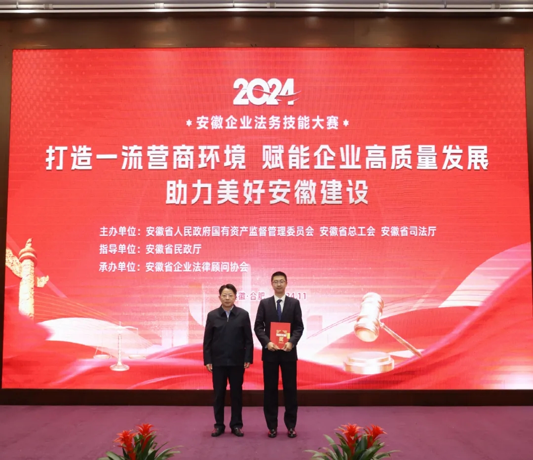 11月20日,由省國資委、省總工會、省司法廳主辦,省企業(yè)法律顧問協(xié)會承辦的“2024年安徽企業(yè)法務(wù)技能大賽”落下帷幕,集團(tuán)選送的《國有私募股權(quán)投資基金退出之公司回購路徑可行性分析》獲評“一等獎(jiǎng)”,集團(tuán)本級獲評“優(yōu)秀組織獎(jiǎng)”,這是繼“2023年安徽企業(yè)法務(wù)風(fēng)采大賽”后,集團(tuán)再獲“一等獎(jiǎng)”“優(yōu)秀組織獎(jiǎng)”等榮譽(yù)。