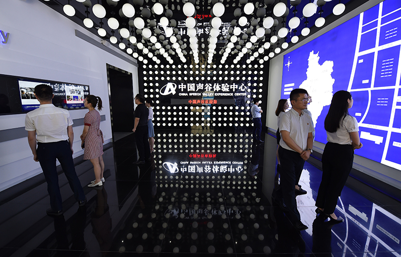 市民在位于安徽合肥的“中國聲谷”體驗(yàn)中心參觀(2021年7月1日攝)。新華社記者 周牧 攝