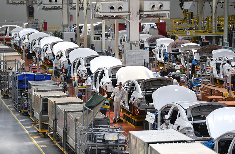 這是2023年2月24日在廣州市番禺區拍攝的廣汽埃安新能源汽車股份有限公司總裝生產線。新華社記者 鄧華 攝