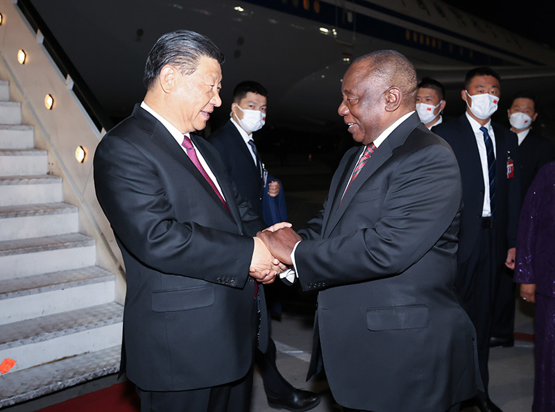 拉馬福薩熱烈歡迎習近平主席對南非進行國事訪問。習近平表示,我很高興再次到訪南非,期待同你就深化中南關系及共同關心的問題深入交換意見。