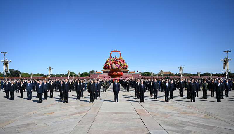 新華社北京9月30日電?鮮花獻英烈,浩氣壯山河。烈士紀念日向人民英雄敬獻花籃儀式30日上午在北京天安門廣場隆重舉行。黨和國家領導人習近平、李強、趙樂際、王滬寧、蔡奇、丁薛祥、李希、韓正等,同各界代表一起出席儀式。