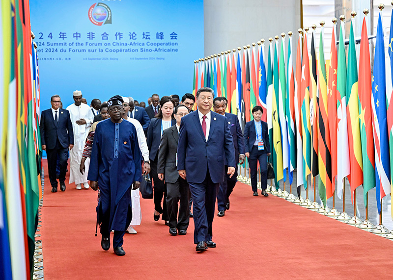初秋北京,高遠澄明。天安門廣場和長安街兩側,鮮艷的五星紅旗同53個非洲國家和非洲聯盟旗幟迎風飄揚。