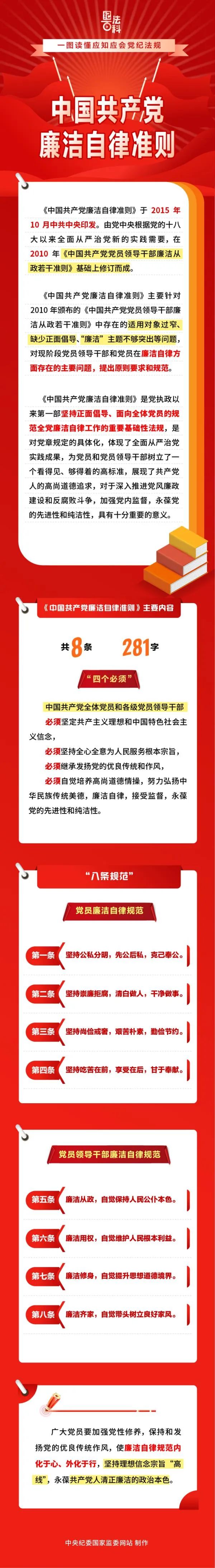 一圖讀懂中國共產(chǎn)黨廉潔自律準(zhǔn)則